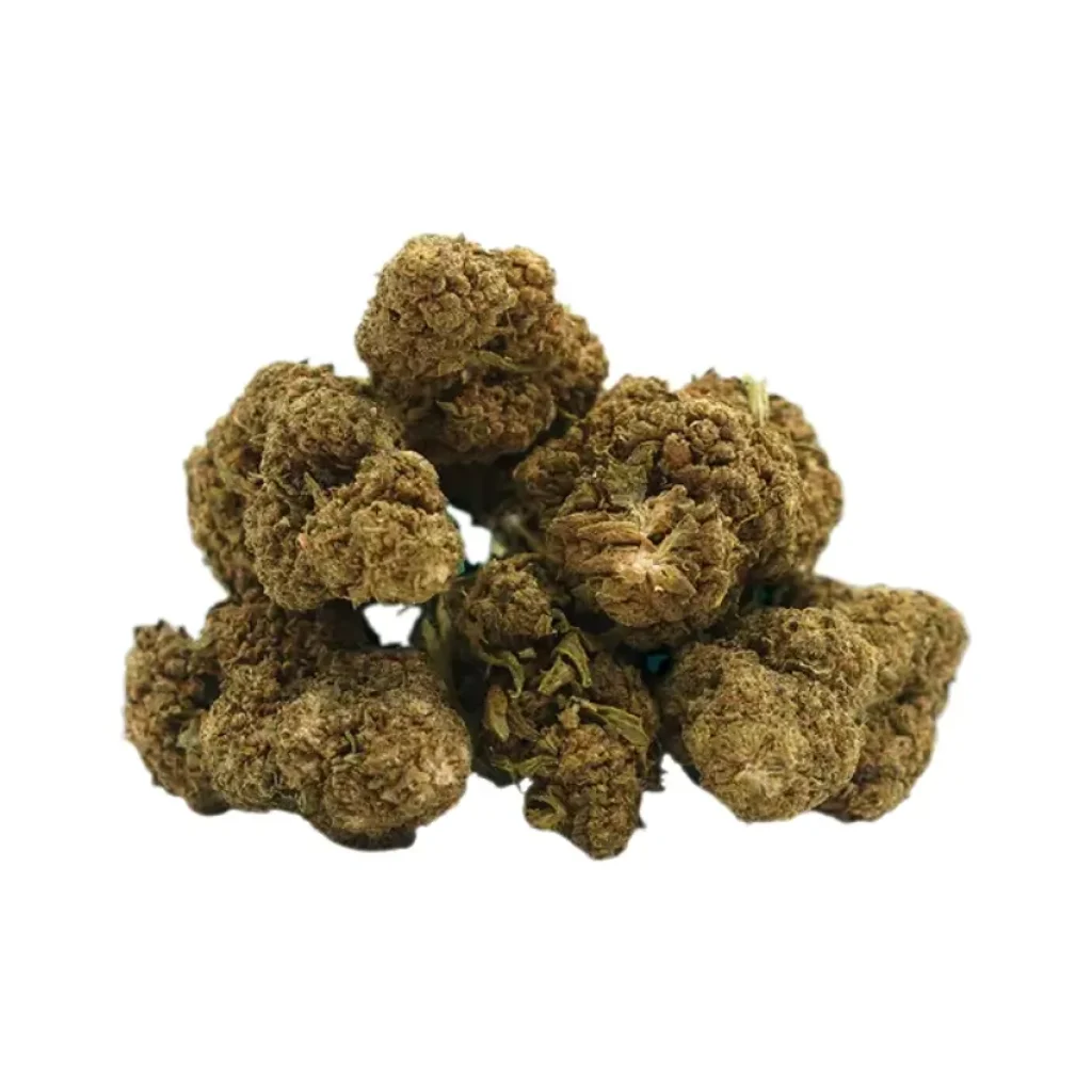 La Moonrock CBD, c’est une expérience à part ! Ce n’est pas une simple fleur, elles sont impressionnantes visuellement. C’est un mélange de bud trempé dans de l’huile de CBD puis roulé dans du pollen. Résultat : une concentration en CBD bien plus élevée que la moyenne et un look presque lunaire 🌑.